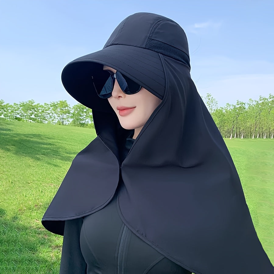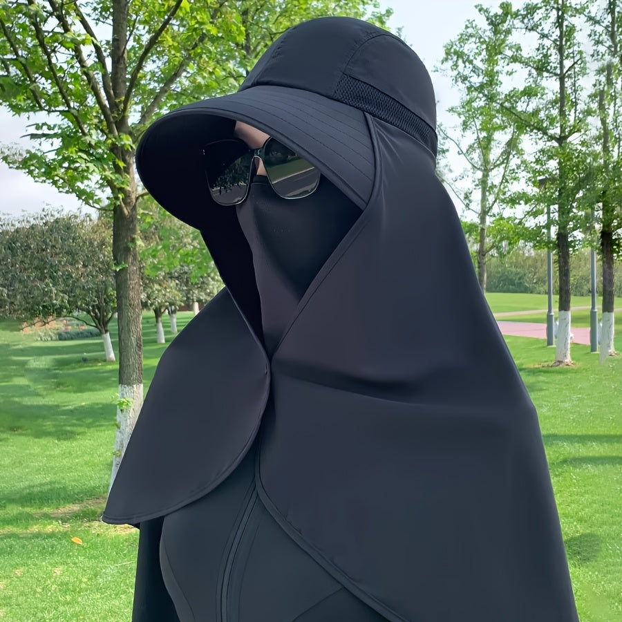 1pc, unisex wide brim buni hat, adjustable neck strap, breathable mesh, hat shawl mask 3in 1, summer travel beach hat, perfect for summer beach outdoor hiking trips