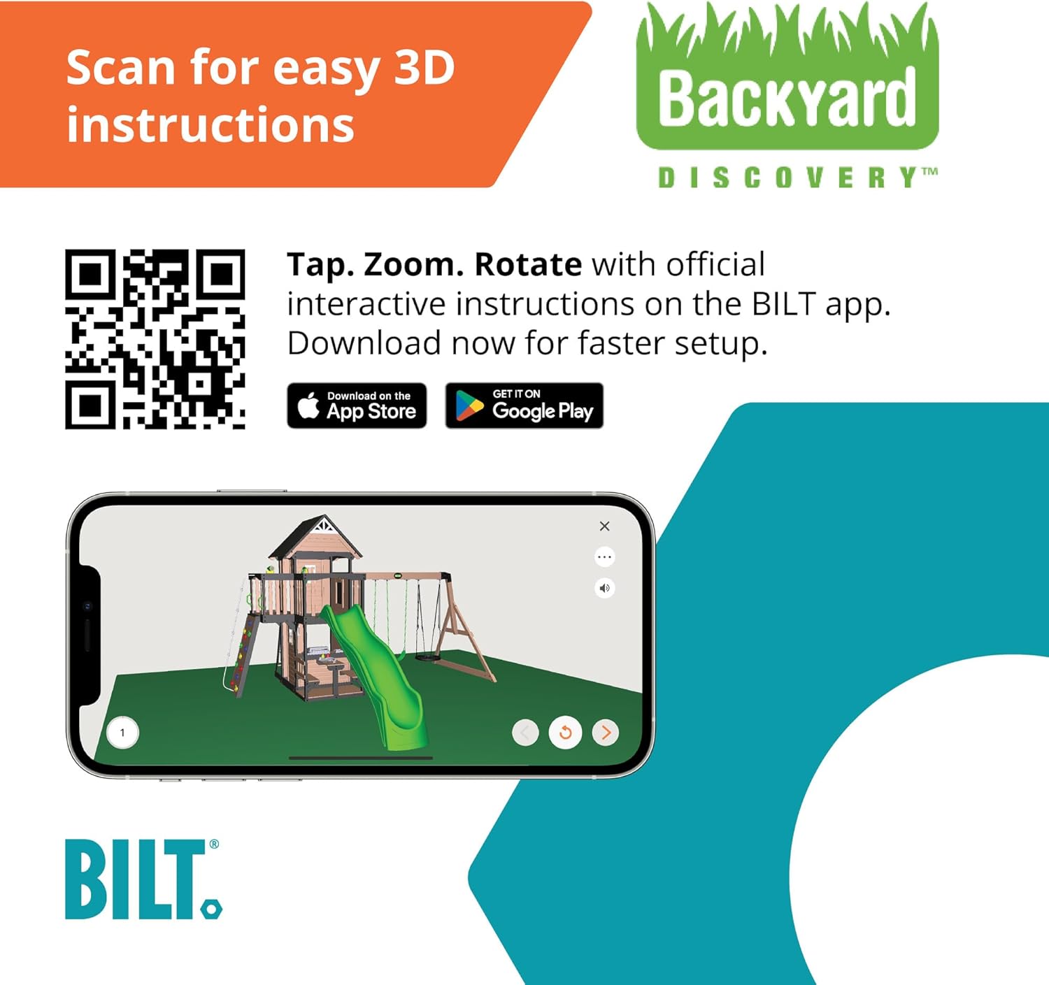 Backyard Discovery Canyon Creek Cedar Wood Swing Set with Wave Slide, Clubhouse, Play Kitchen, Picnic Area, Belt Swings, Web Swing, Rock Wall, Balconies, Playhouse, Step Ladder, Outdoor Playset