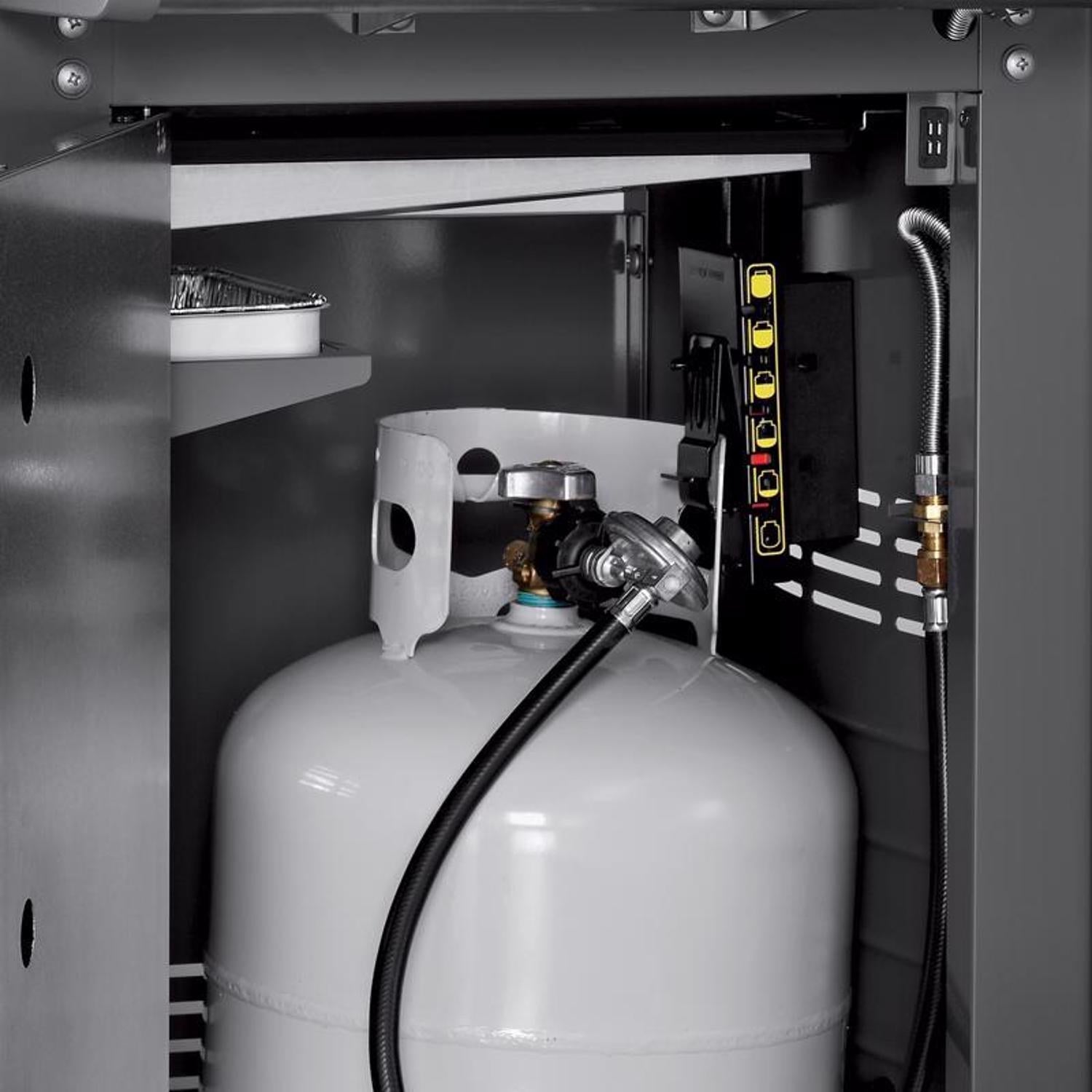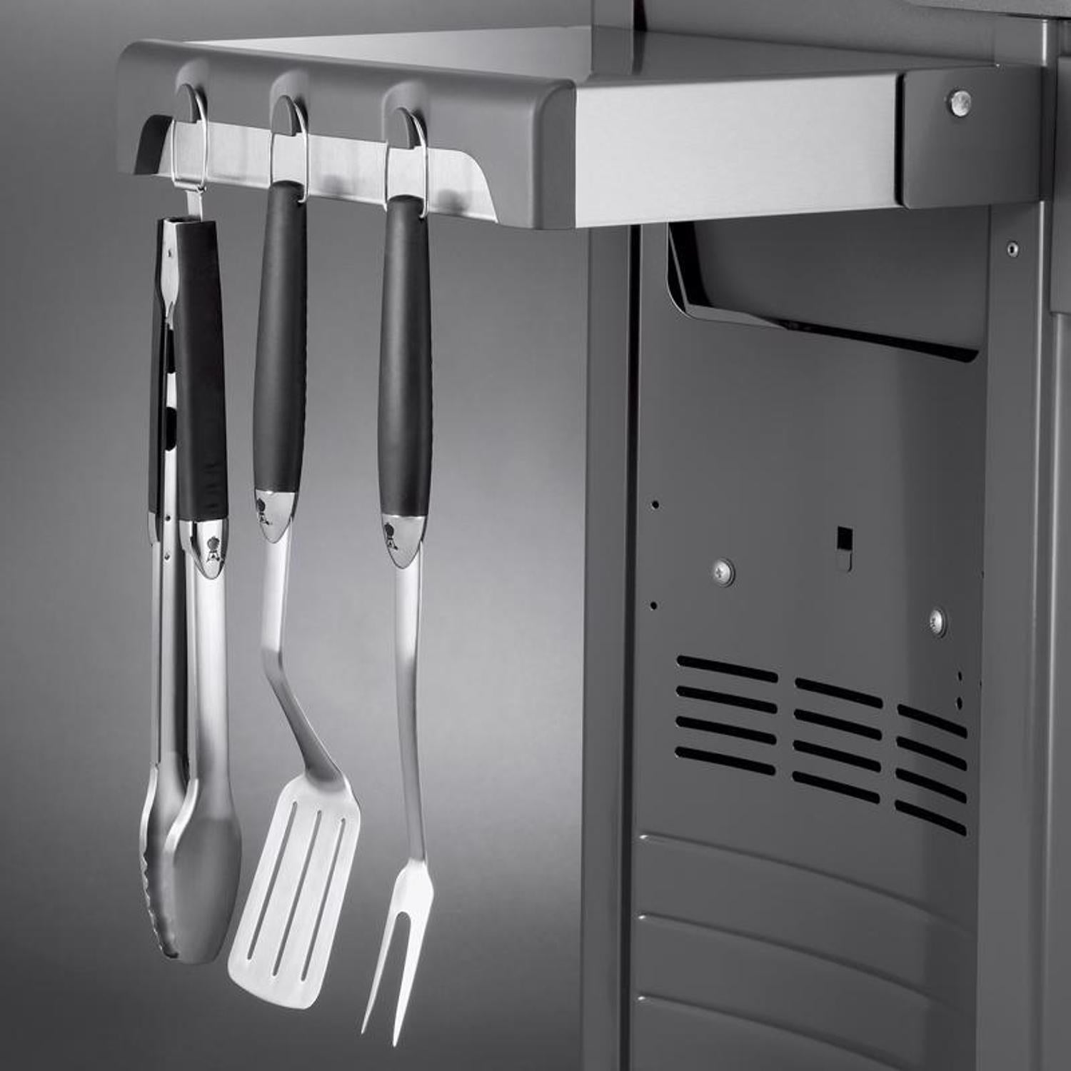 Get ready to step up your grilling experience. As the family sits down for dinner. or a couple of friends come over for a bite - this three burner grill will do its magic. With the spacious cooking area you can sear steaks on one side while grilling an appetizer on the other. and the convenient open-cart allows you to keep your tools and equipment within reach. Armed with the strong GS4 grilling system. this gas grill is sure to take you and your meals to the next level.